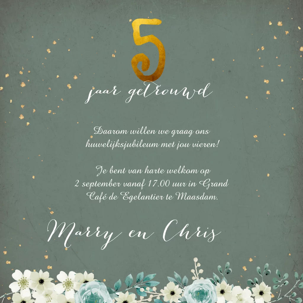 Jubileum uitnodiging 5 jaar getrouwd goud look