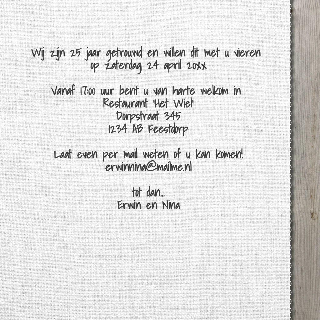 25 jaar getrouwd houten feest uitnodiging met linnen