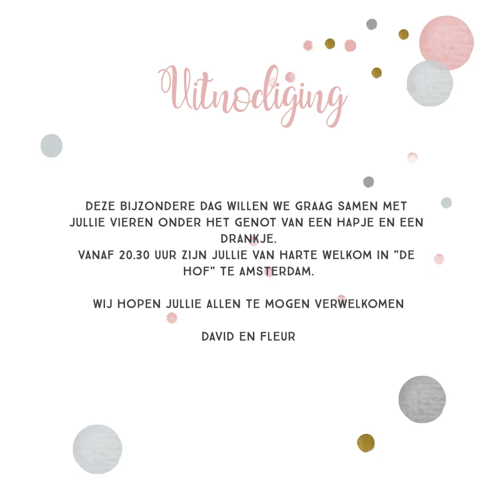 Feestelijke jubileum uitnodiging 25 jaar getrouwd met confetti en foto binnenkant. (8146)