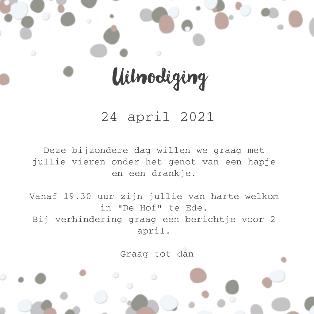 Hippe uitnodiging 25 jarig jubileum confetti en foto