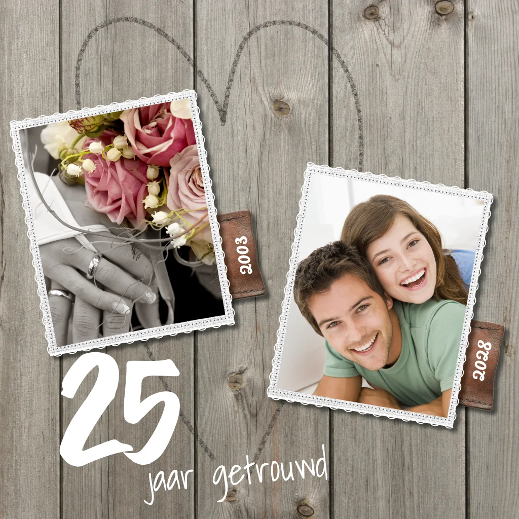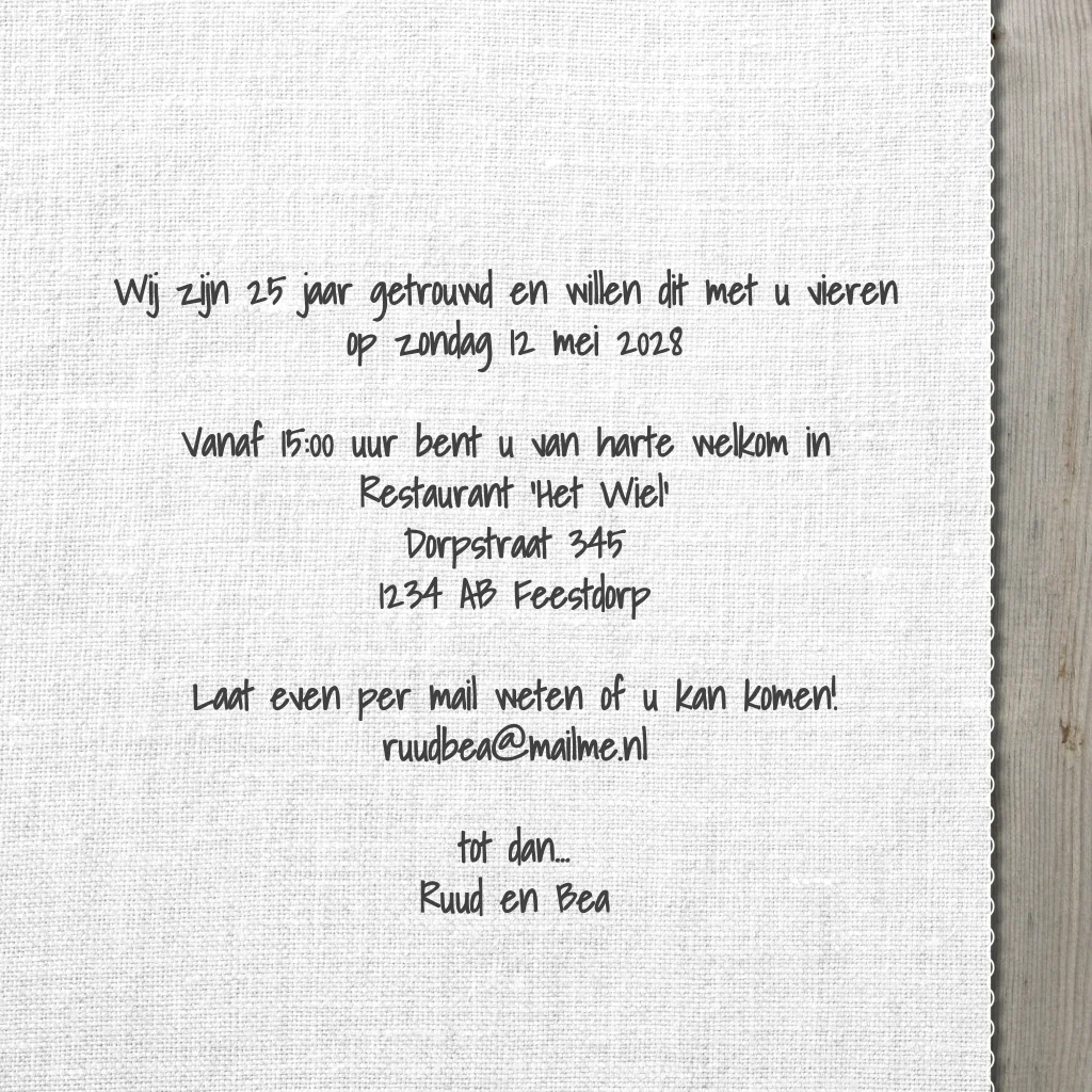 Foto uitnodiging met linnen en hart foto collage 25 jaar getrouwd