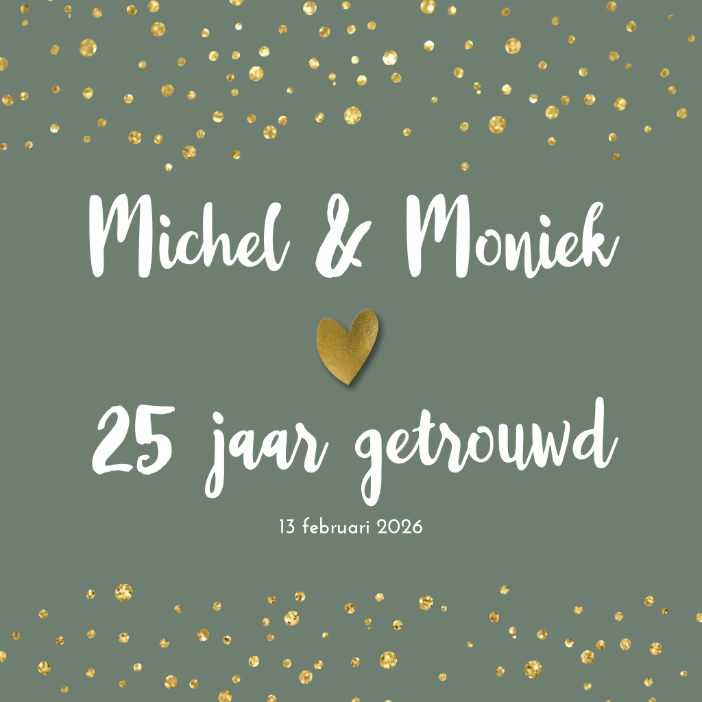 Jubileum uitnodiging 25 jaar getrouwd met spetters en goudkleurig hart. (8148)