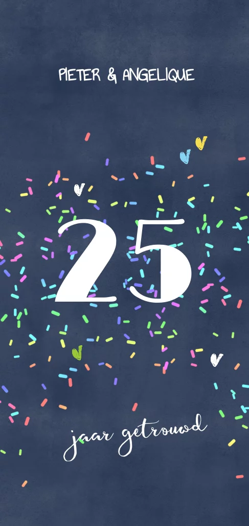 Jubileum uitnodiging 25 jaar getrouwd met confetti. (9928)