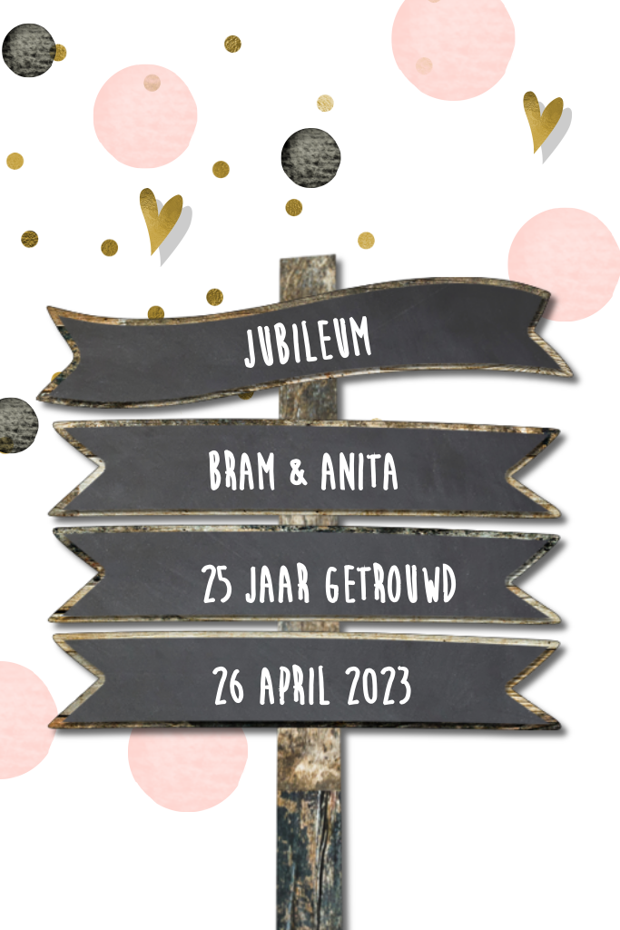 Jubileum uitnodiging 25 jaar getrouwd met houten borden