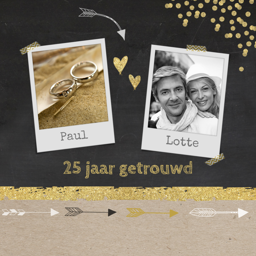25 jaar getrouwd jubileum uitnodiging kaart met kraft en gouden streep