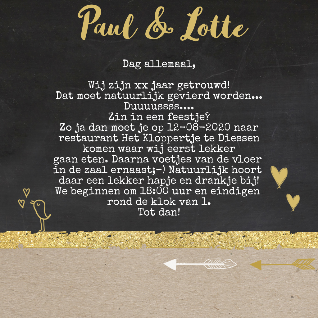 Krijtbord jubileum uitnodigingskaart 25 jaar met kraftlook, goudkleurige streep en details, super hip! (4315)
