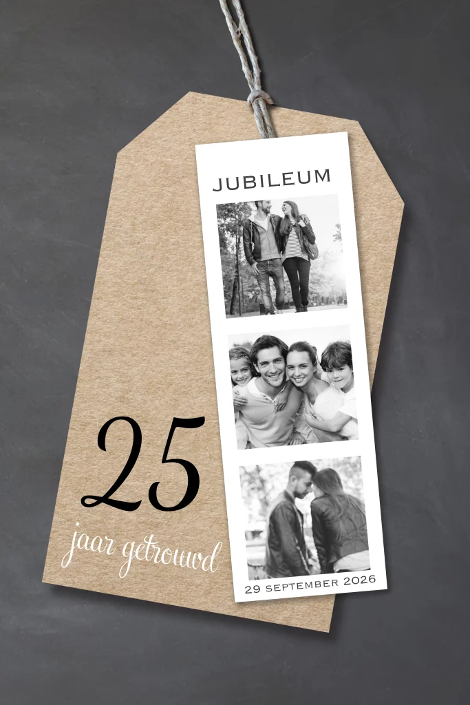 25 jaar getrouwd uitnodiging met fotostrip 3 foto's