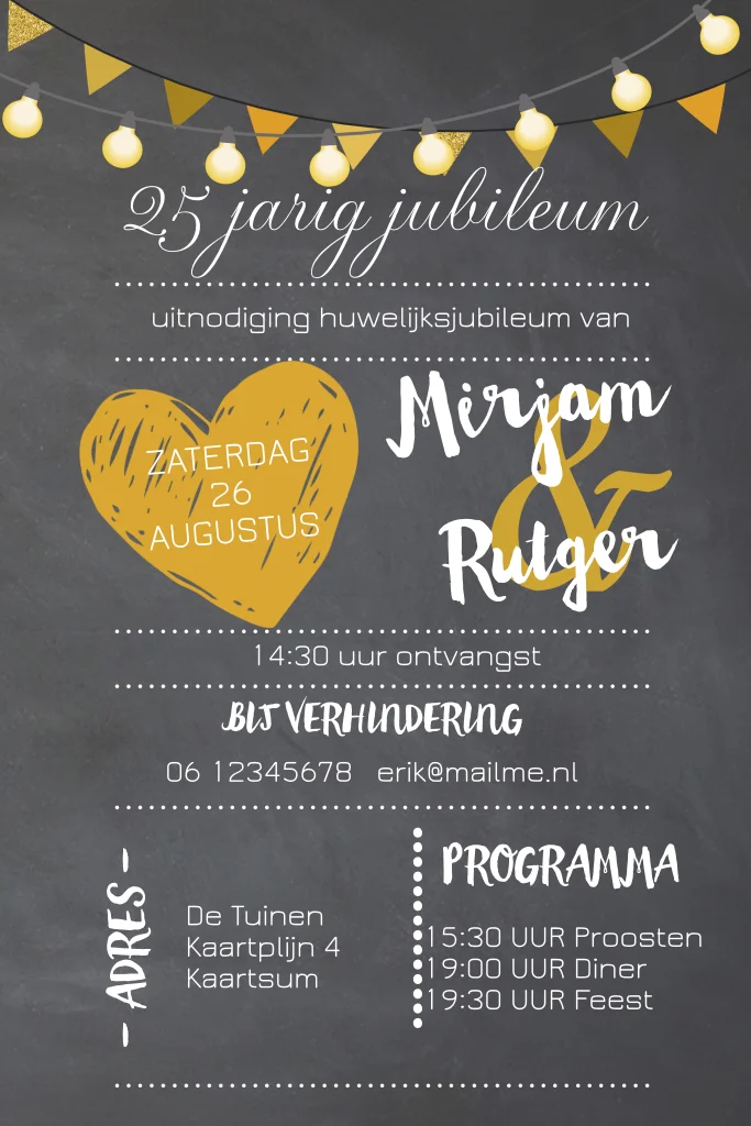 Super hippe uitnodiging feestje 25 jaar getrouwd jubileum