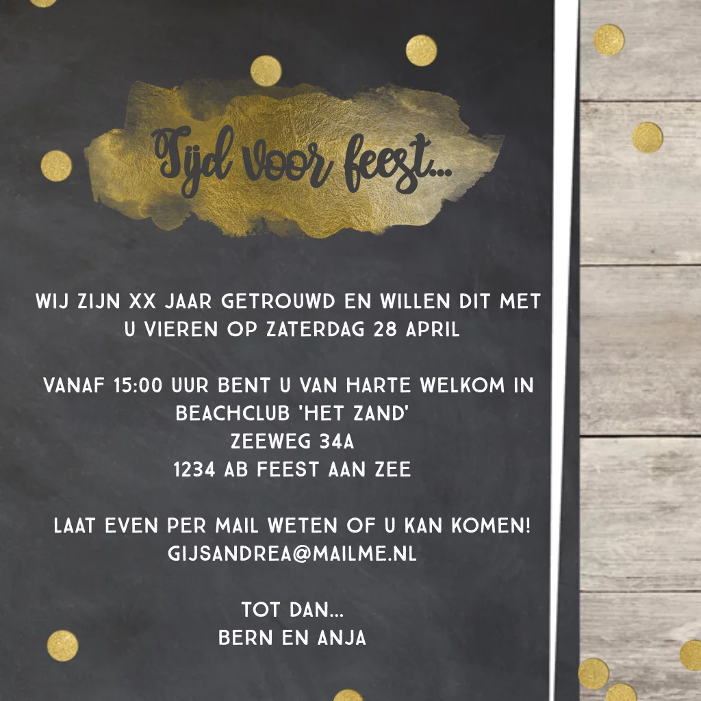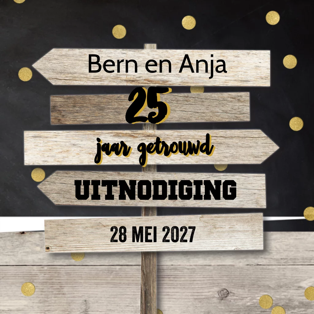 Jubileum uitnodiging 25 jaar getrouwd met houten borden en confetti