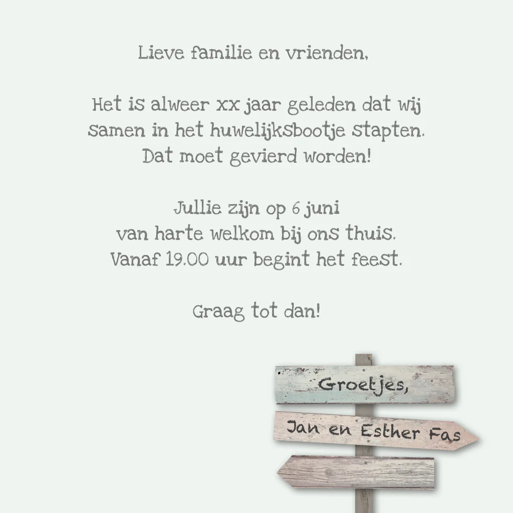 Uitnodiging 25 jarig getrouwd feest met houten borden vierkant
