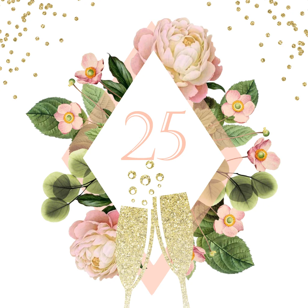 Uitnodiging jubileum 25 jaar getrouwd met glazen en bloemen