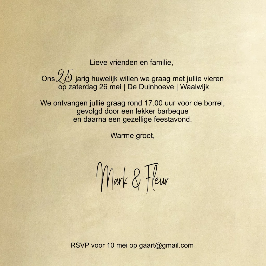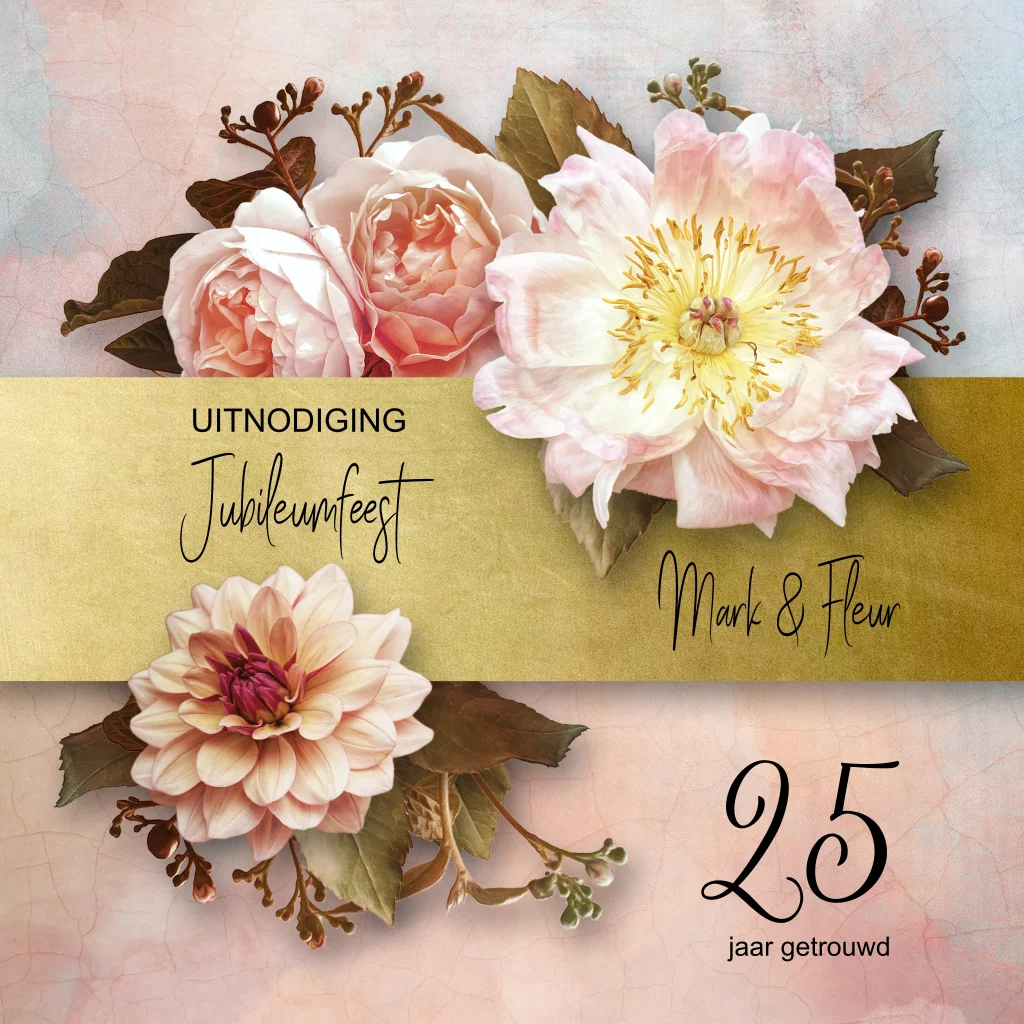Uitnodiging Jubileum 25 jaar getrouwd bloemen