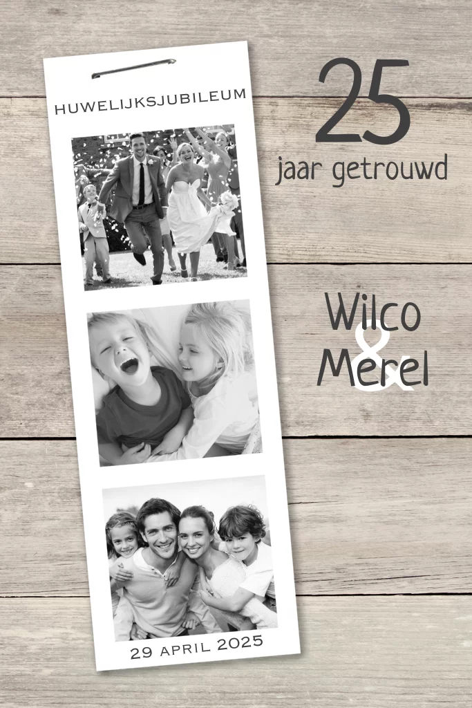 Uitnodiging jubileum 25 jaar getrouwd met hout design en foto strip. Alles is aan te passen! (3266)