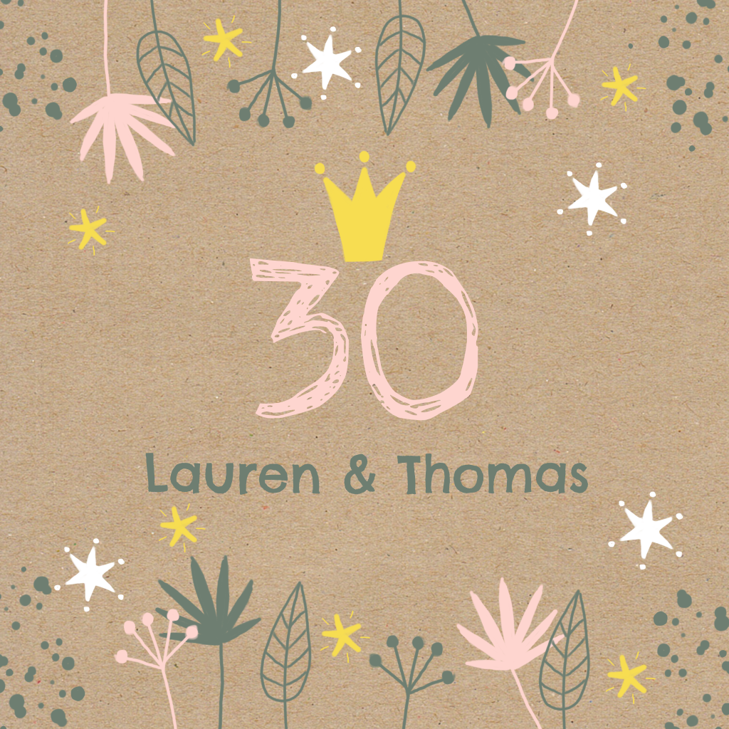 Een hippe jubileumkaart voor een 30 jarig huwelijksfeest. Deze kaart is naar wens zelf aan te passen. (10201)