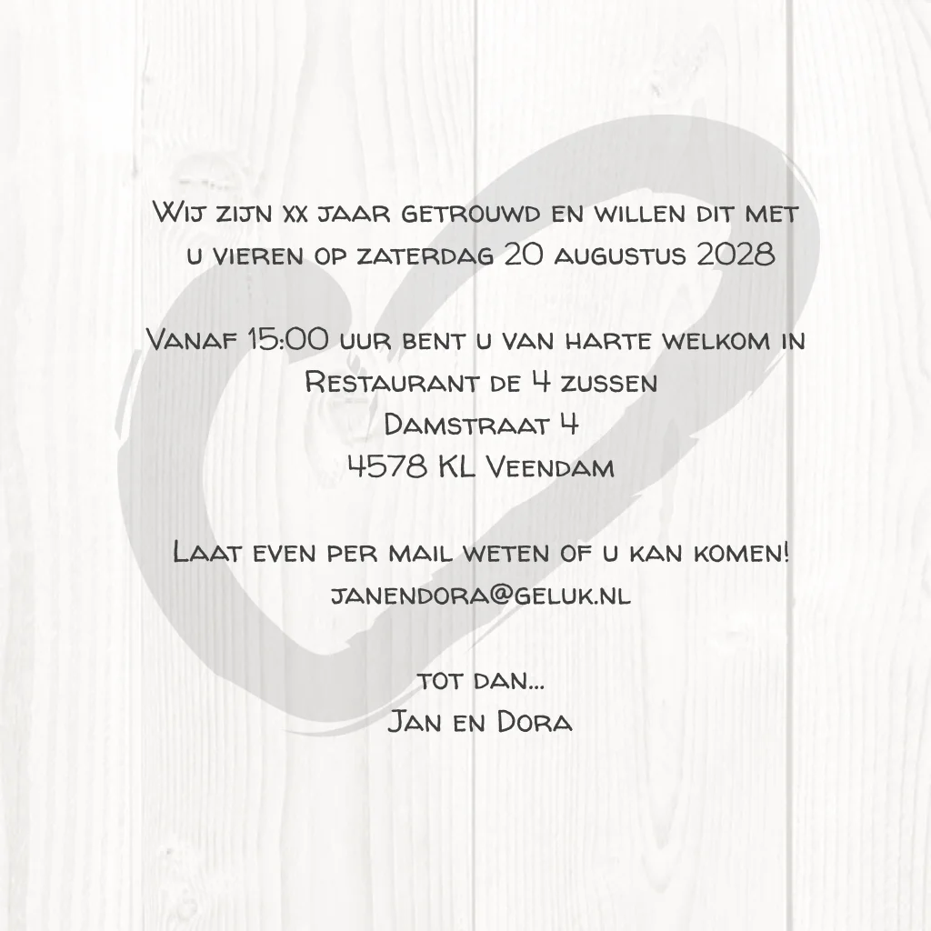 Trendy hout uitnodiging 30 jarig huwelijksjubileum met geverfd hart
