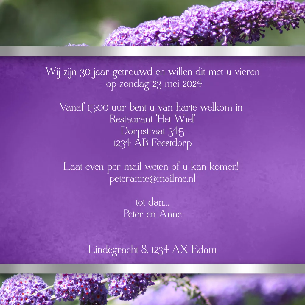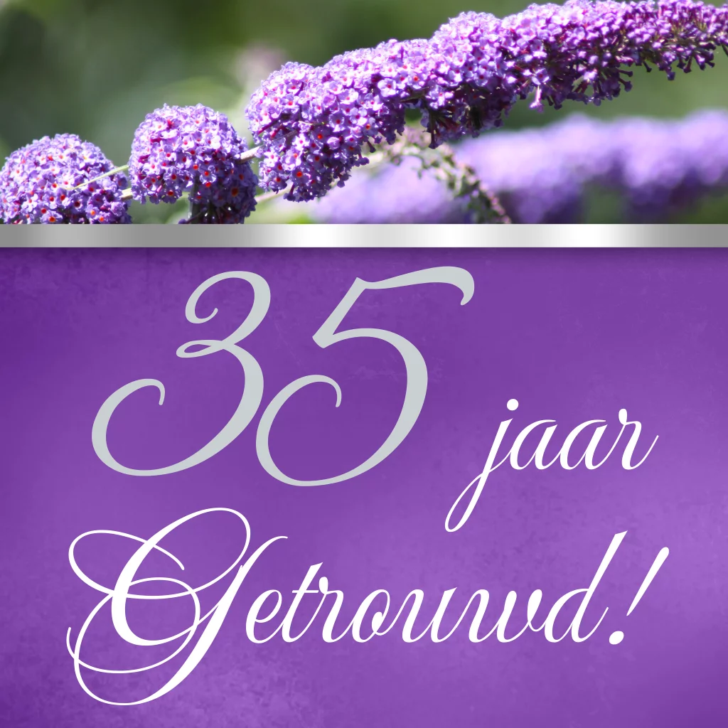 Paarse uitnodigings kaart bloem 35 jaar getrouwd