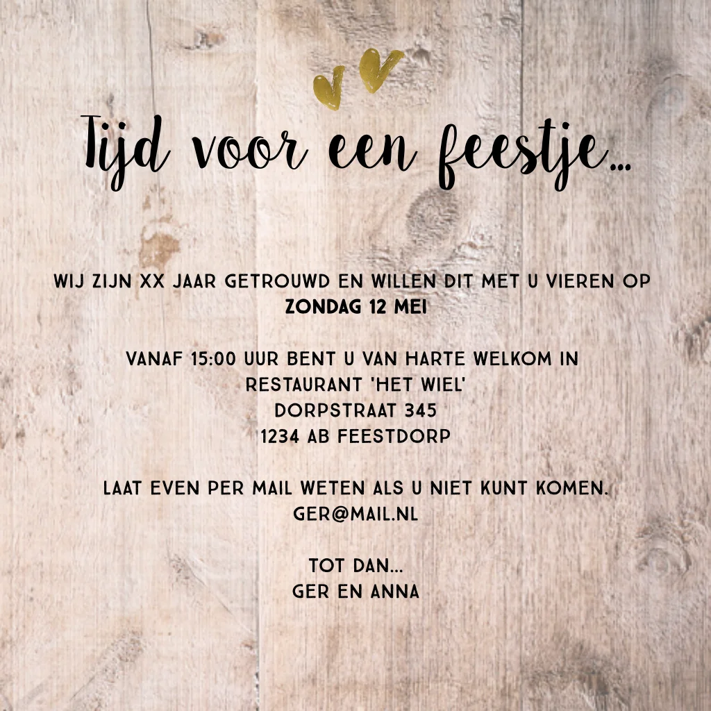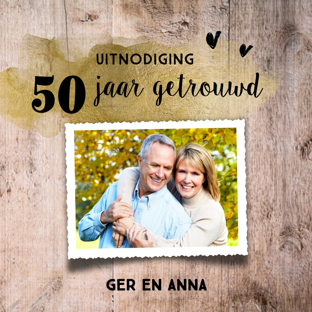 Hippe jubileum uitnodiging 50 jaar getrouwd met goud en hout