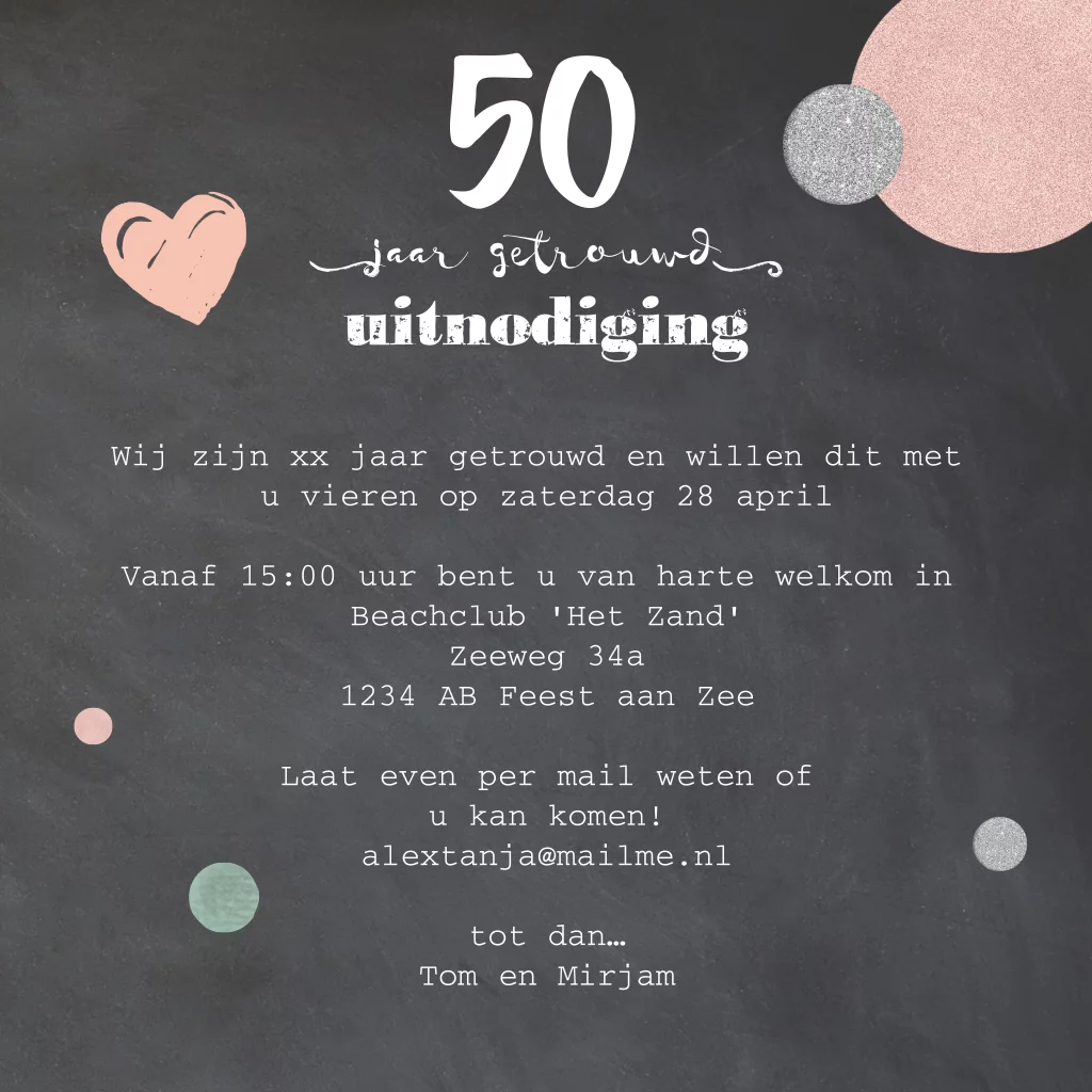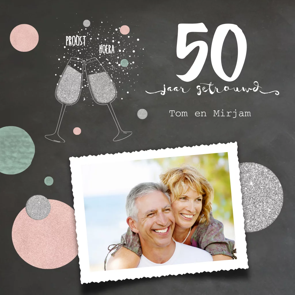 50 jaar getrouwd uitnodiging foto en zilveren glitter glazen