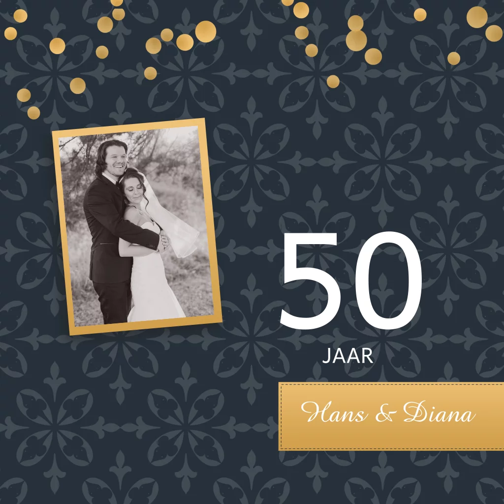 Enkelzijdige jubileumkaart 50 jaar getrouwd met goud barok look