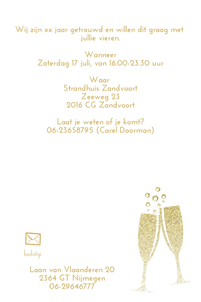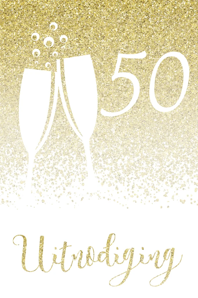 Jubileum uitnodiging 50 jaar met gouden glitters met champagne glazen