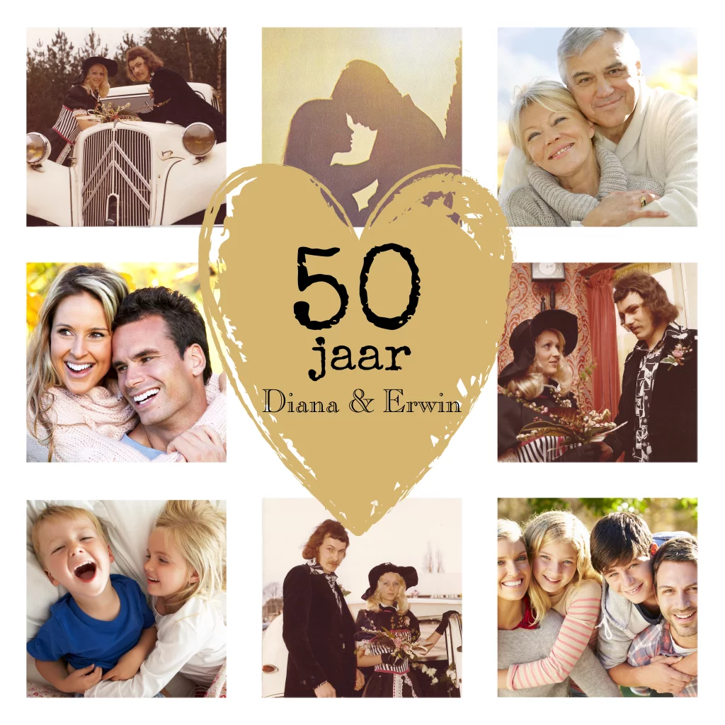 Leuke jubileum kaart fotocollage 50 jaar getrouwd om 8 foto's te plaatsen. Mail ons gerust voor hulp bij het plaatsen van de foto's! (2022)
