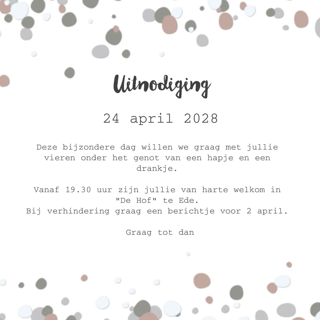 Hippe uitnodiging 50 jarige bruiloft confetti en foto