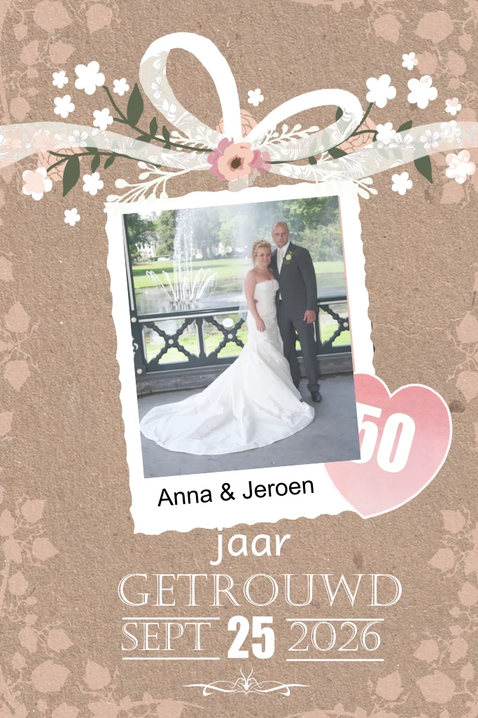 Hippe uitnodiging 50 jarig huwelijk met foto en pastelkleur