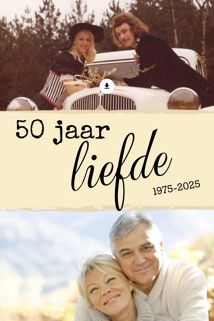 Uitnodiging Huwelijksjubileum feest 50 jaar getrouwd met foto van nu en vroeger. (2767)
