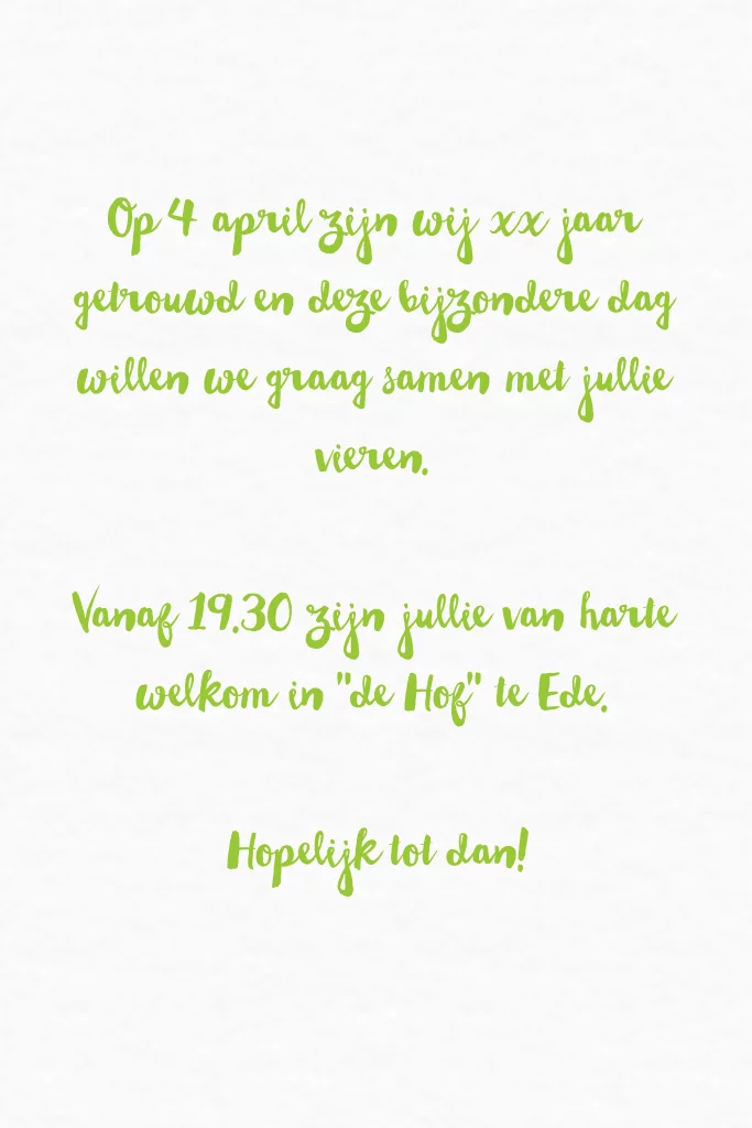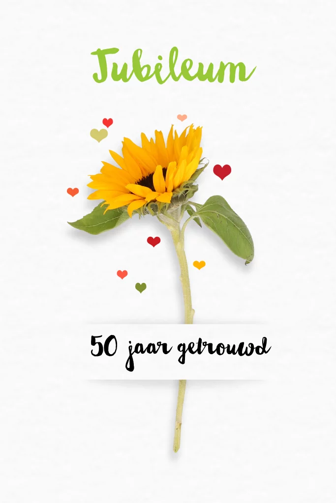 Uitnodigingskaart voor een 50 jarig huwelijksjubileum met hartjes en een zonnebloem. (5123)