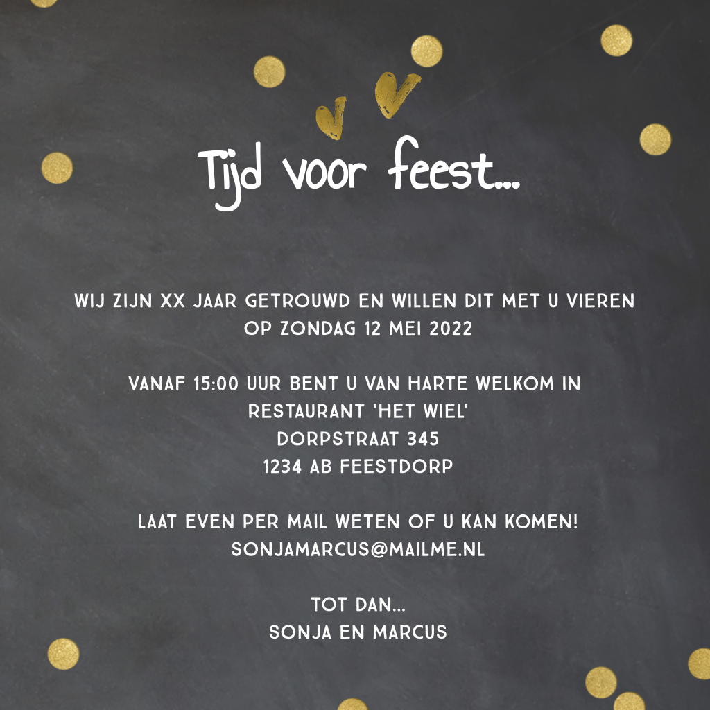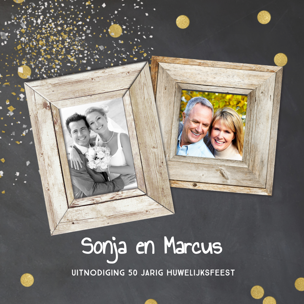 Jubileum uitnodiging met foto en confetti 50 jaar getrouwd. (6433)