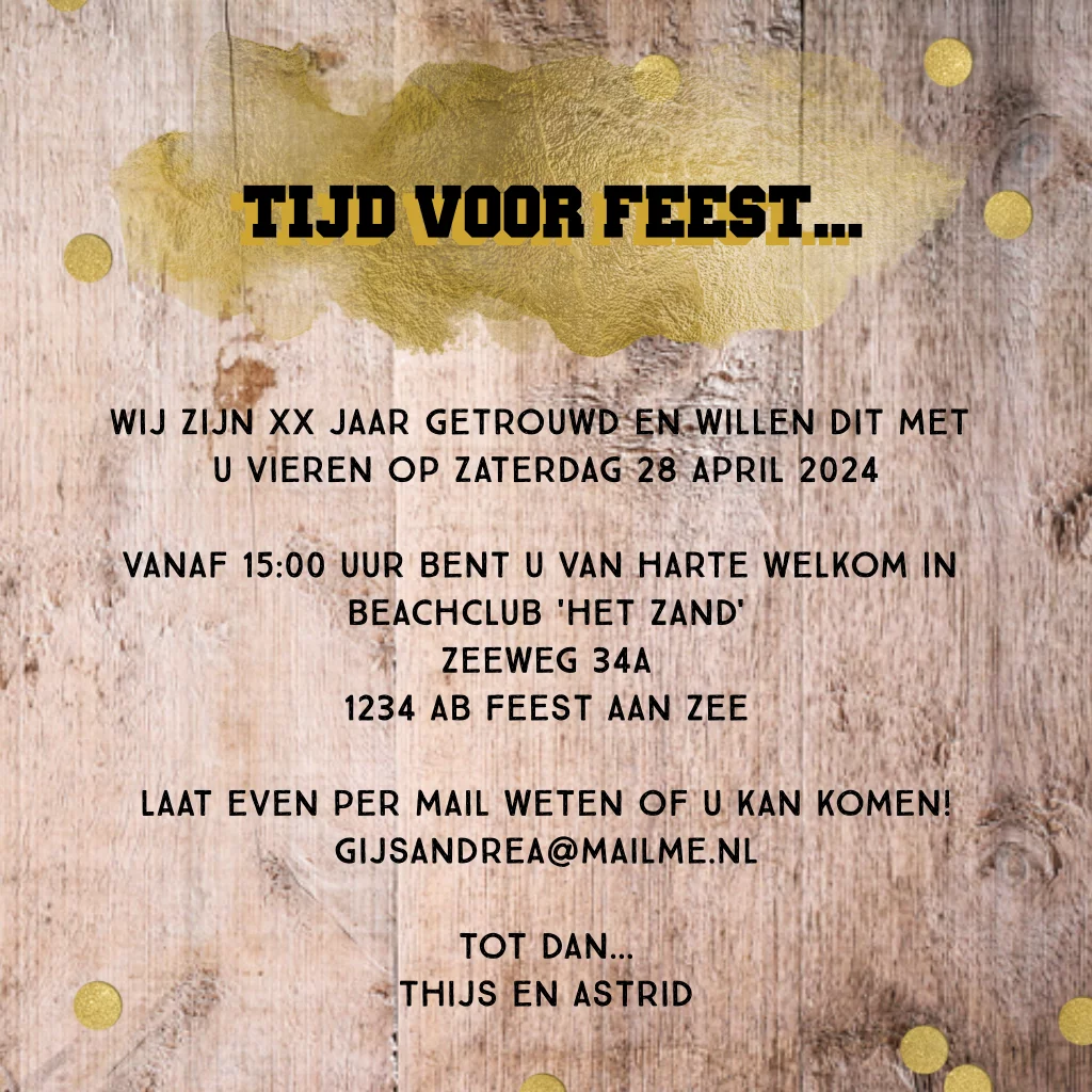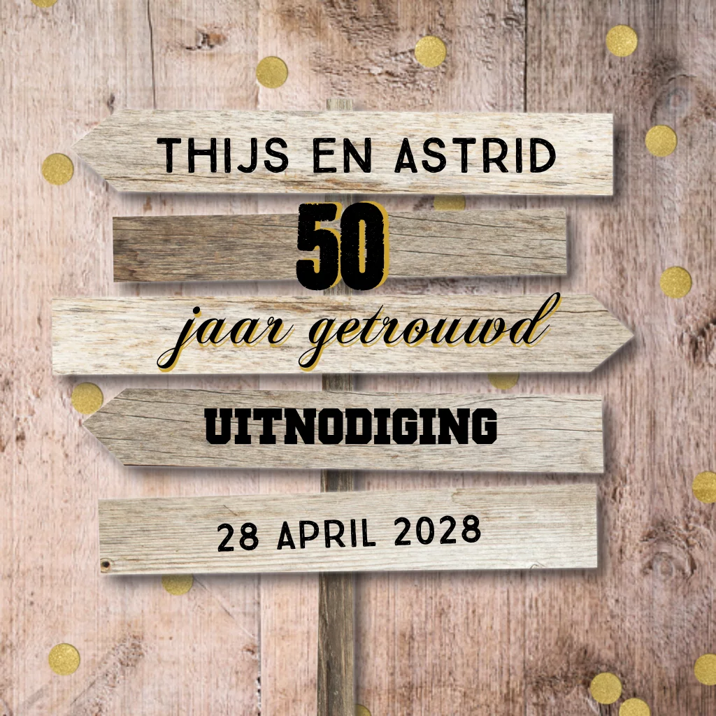 Uitnodiging 50 jarig jubileum voor als jullie 50 jaar getrouwd zijn met houten borden en confetti. (6441)