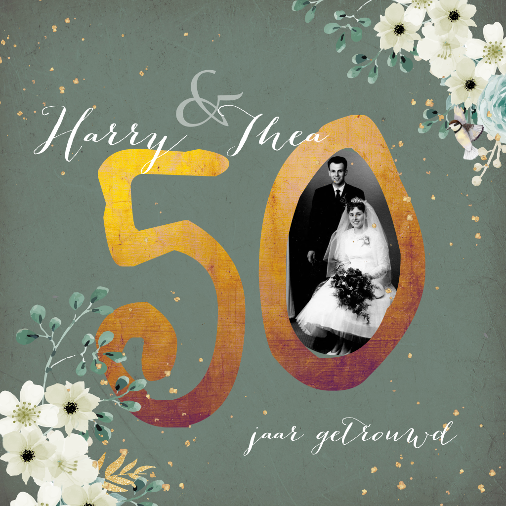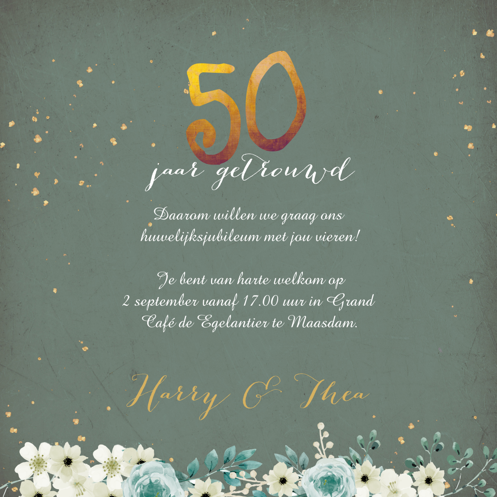 Jubileum uitnodiging 50 jaar getrouwd goud look