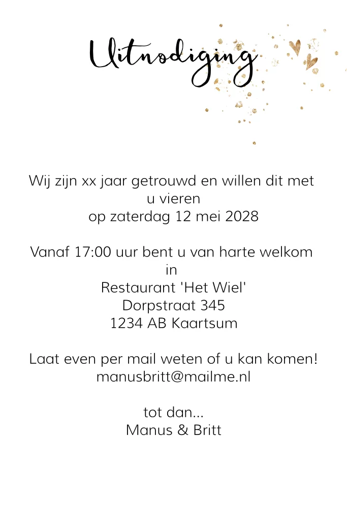Jubileum uitnodiging 50 jaar getrouwd met groot hart