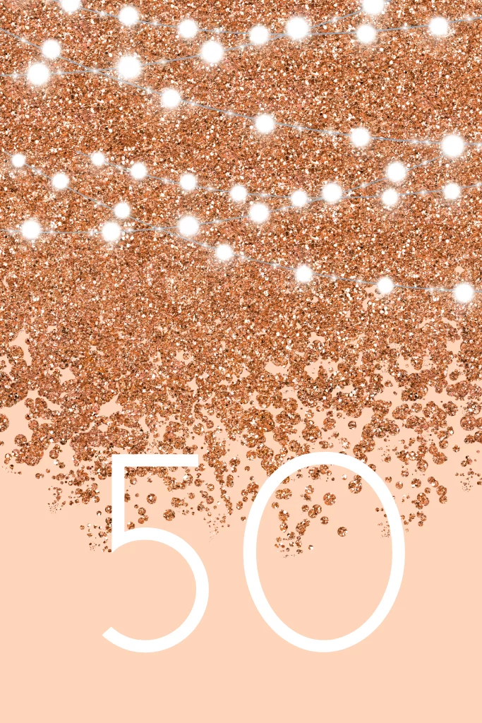 Uitnodiging voor een 50 jarig jubileumfeest met koperen glitters. (7136)