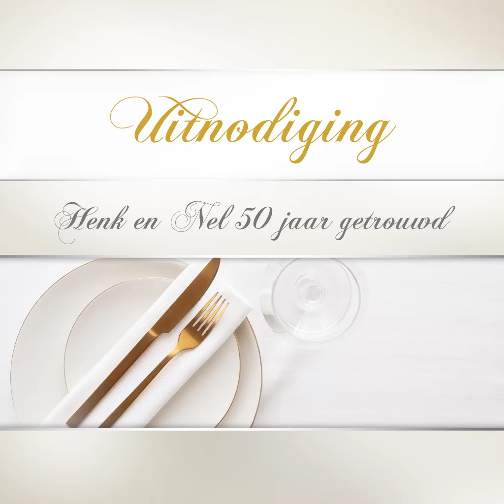 Klassieke maar ook chique uitnodiging 50 jaar getrouwd voor een etentje met luxe bestek. Pas de voorbeeld foto eventueel naar wens aan. (2554)
