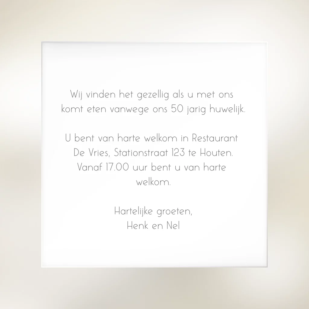 Klassieke uitnodiging jubileum 50 jaar getrouwd etentje