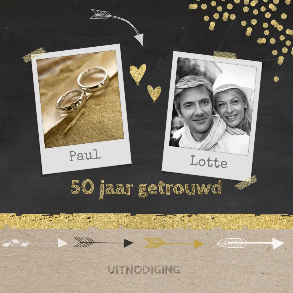 50 jaar getrouwd jubileum uitnodiging kaart met kraft en gouden streep