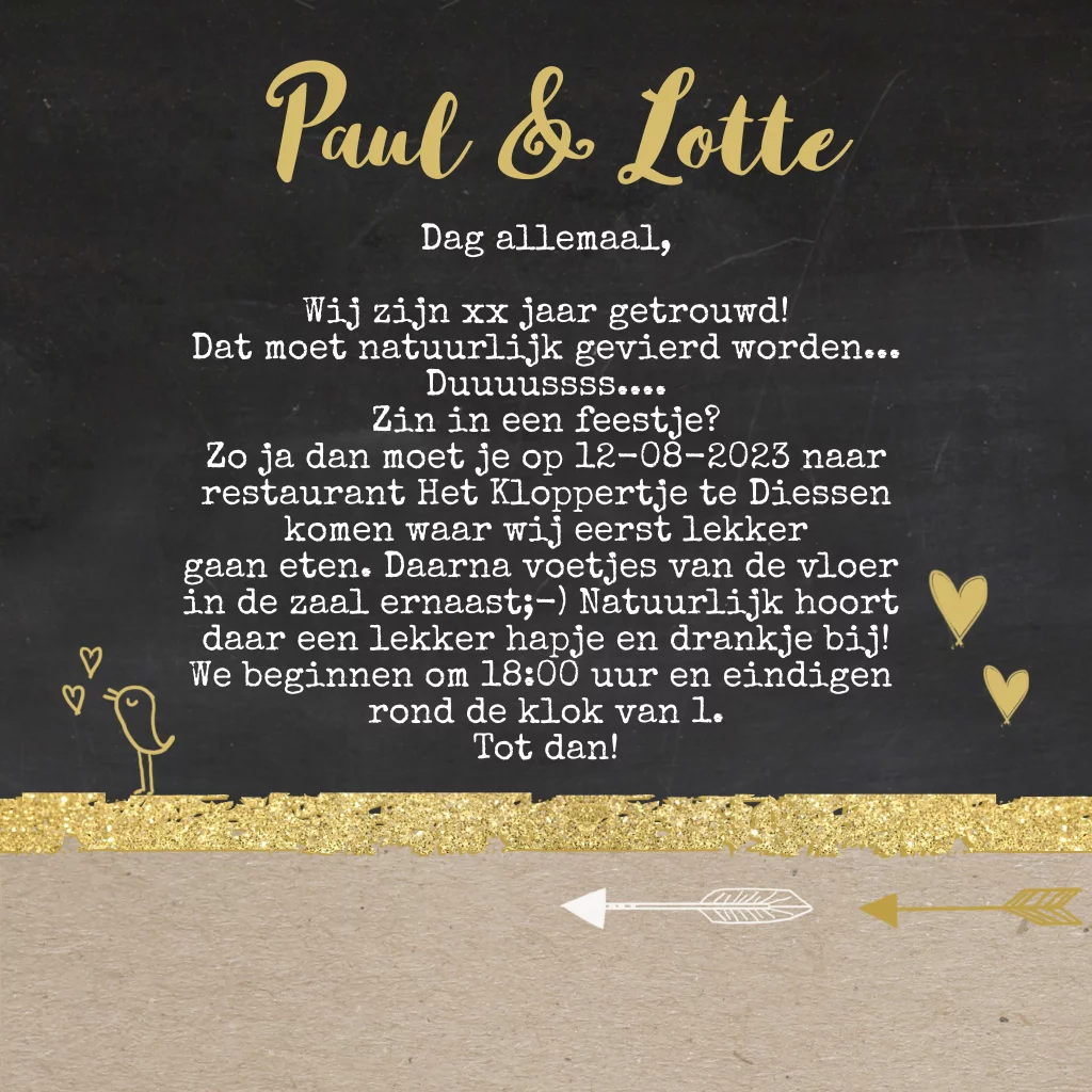 Jubileum uitnodigingskaart 50 jaar getrouwd met kraftlook, goudkleurige streep en details, super hip! (4315)