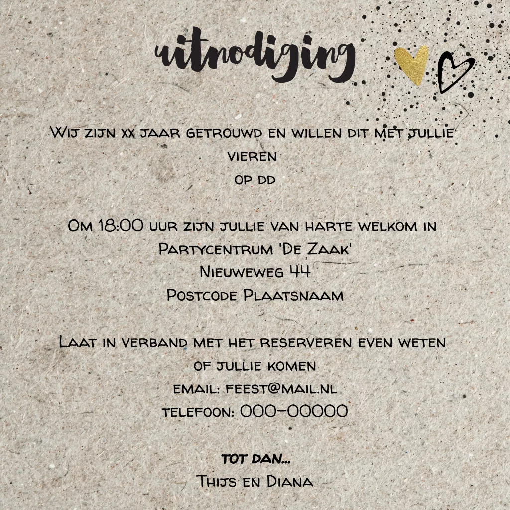 Hippe uitnodiging 50 jaar getrouwd op kraft-look