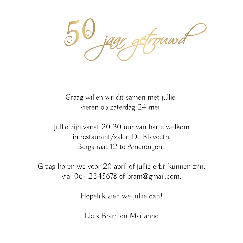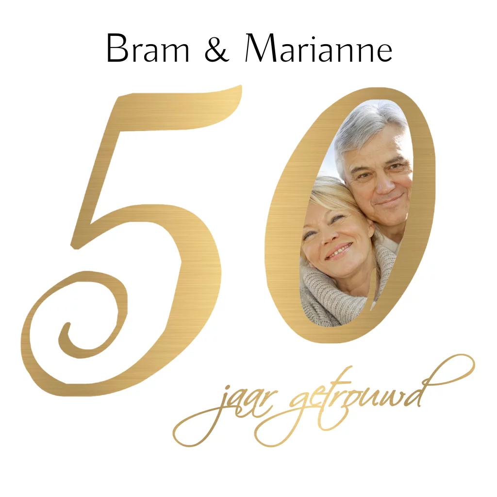 Mooie uitnodiging voor een 50 jaar getrouwd feest waarbij je een foto in het getal op de voorkant kunt plaatsen. (8124)
