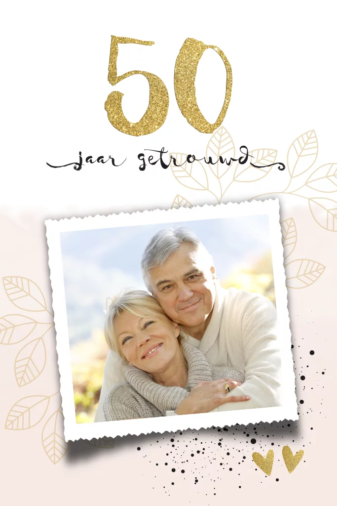 Stijlvolle uitnodiging 50 jaar getrouwd met foto en glitters