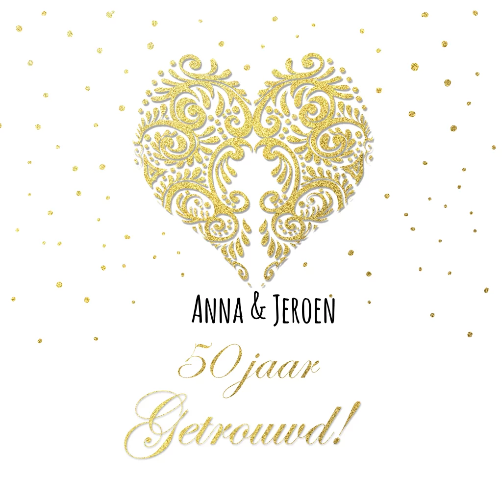 Trendy uitnodigingskaart 50 jaar getrouwd gouden hartje