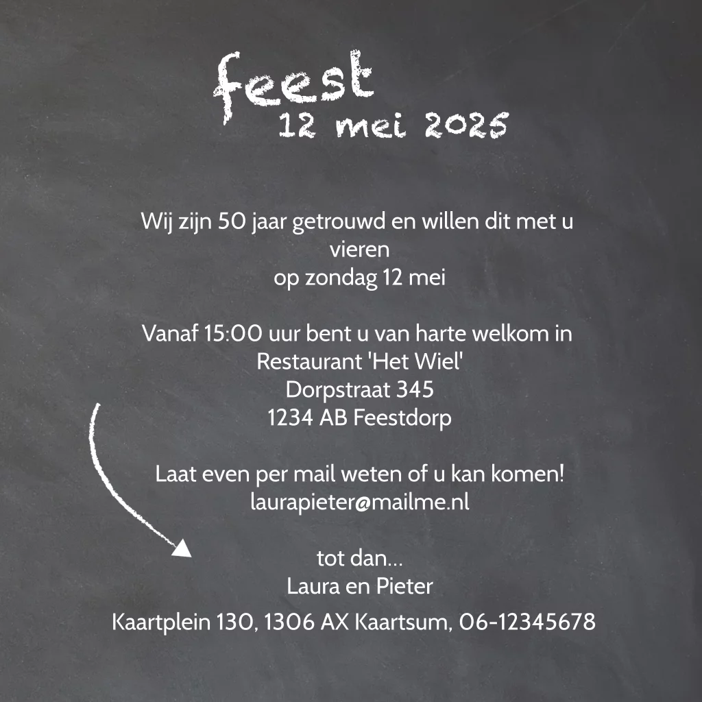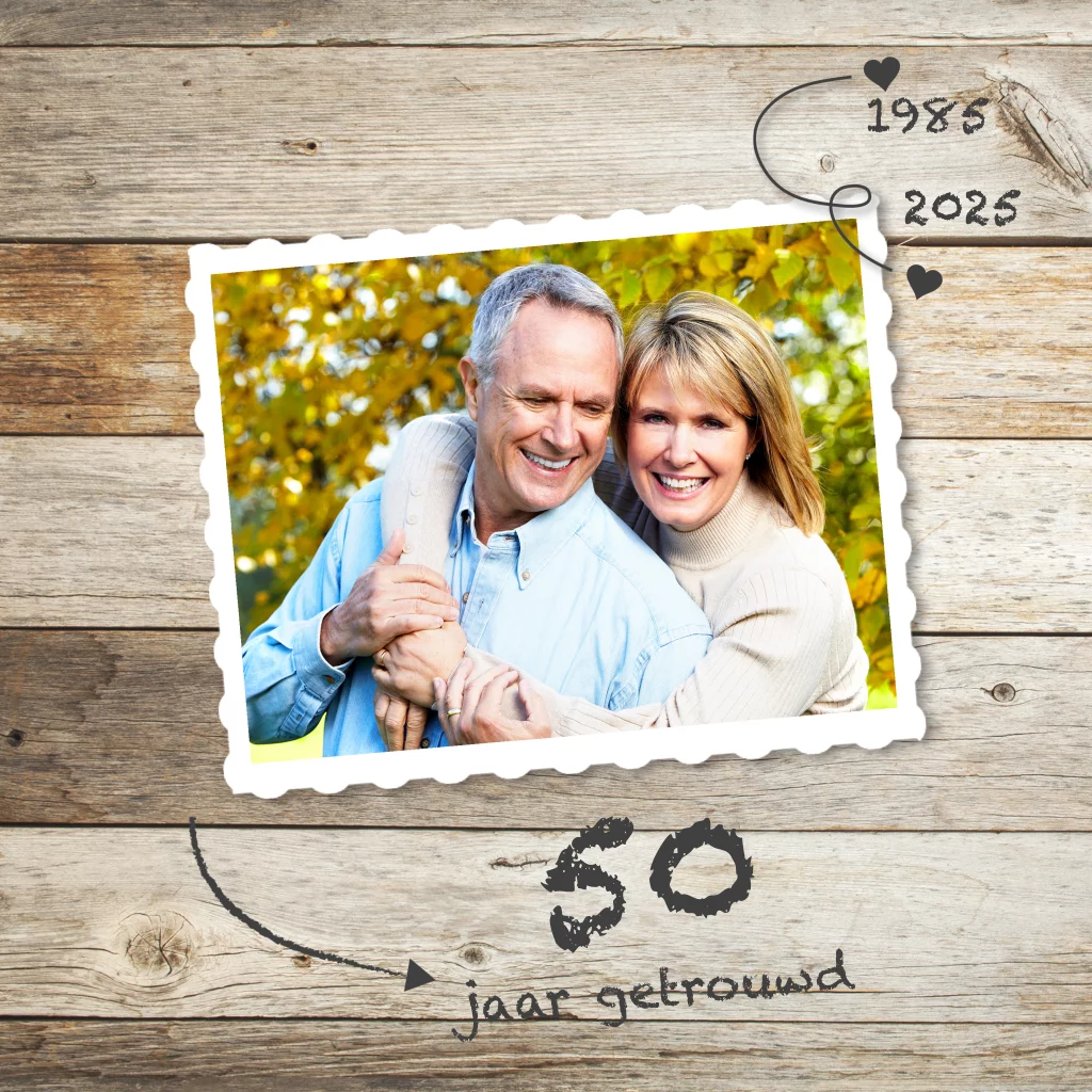 Uitnodiging 50 jaar getrouwd bruin hout en foto