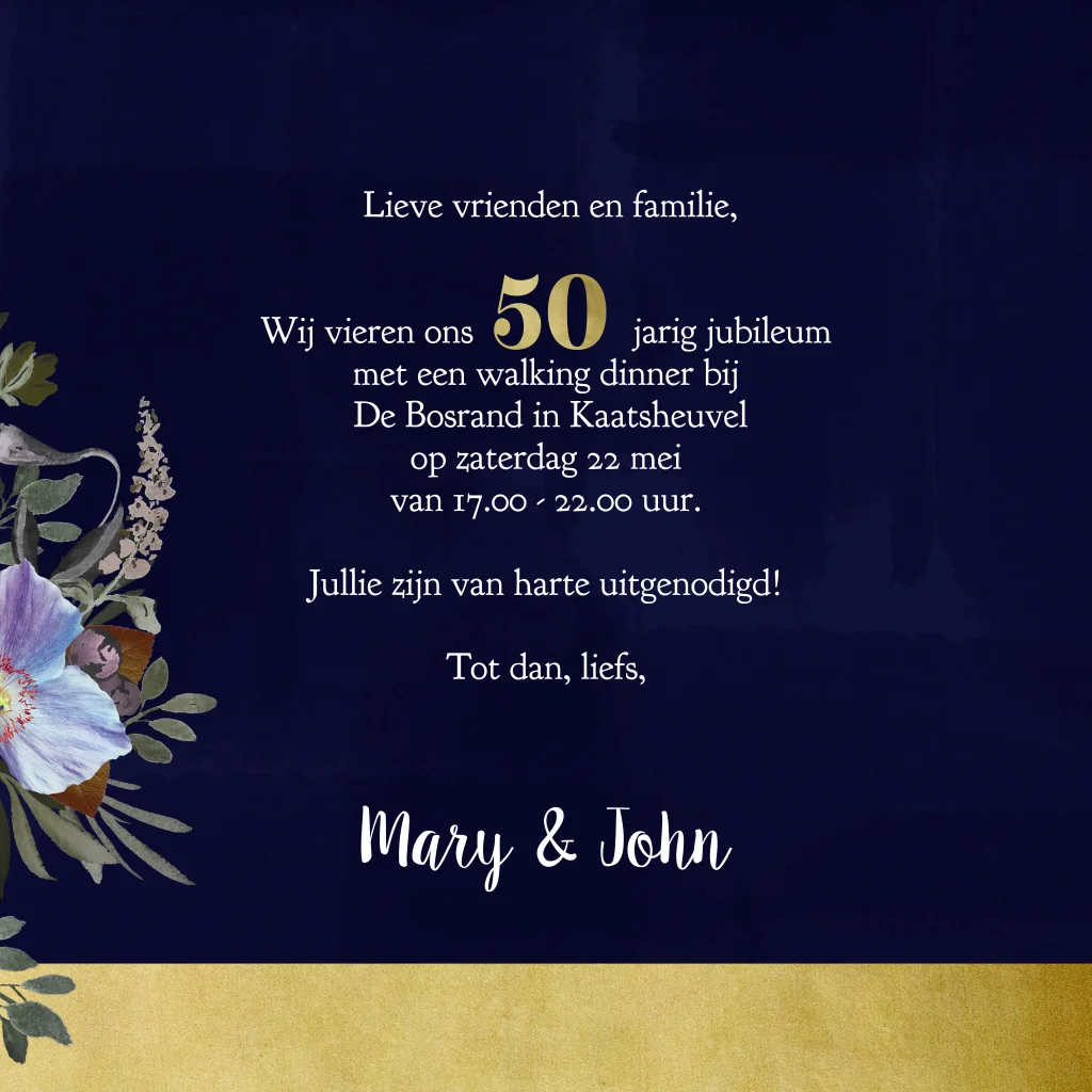 Uitnodiging 50 jaar getrouwd rozen anemoon en gouden getal