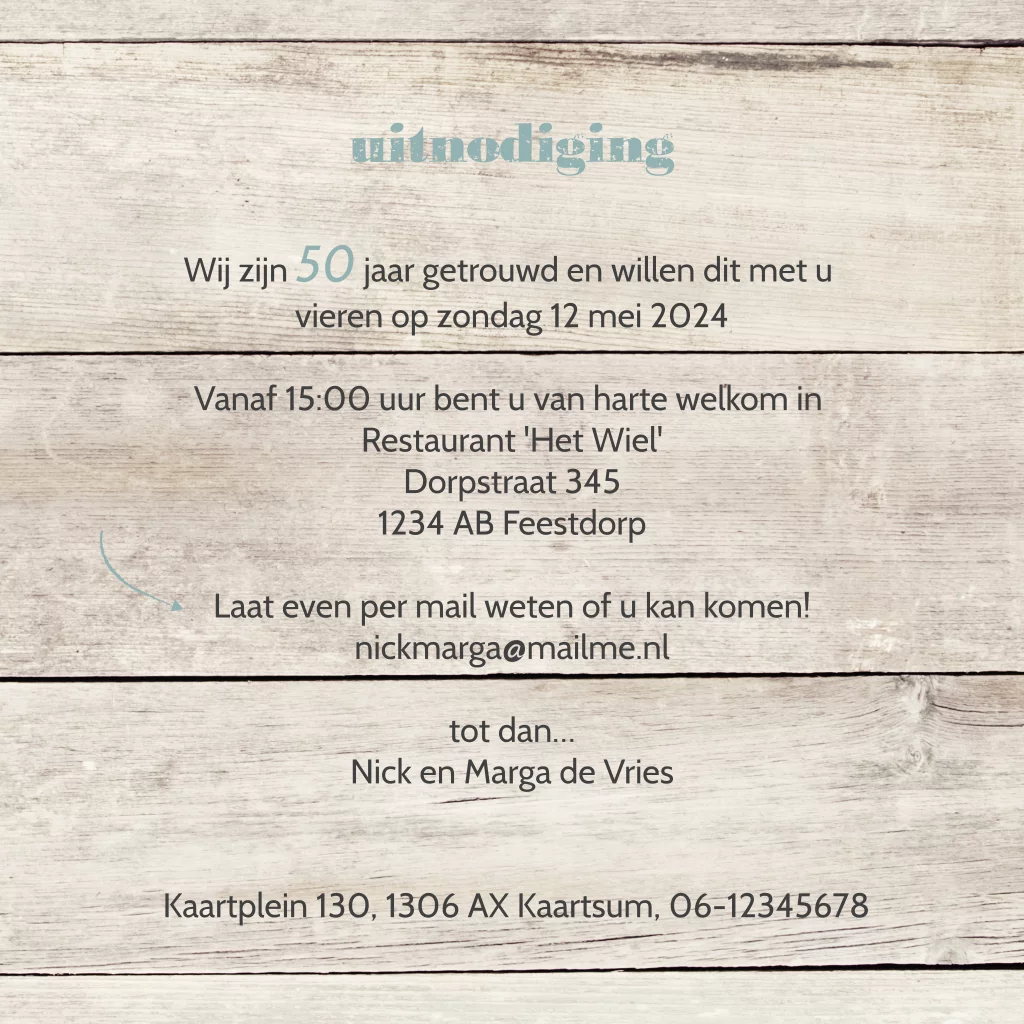 Uitnodiging 50 jaar getrouwd met verfvegen en hout