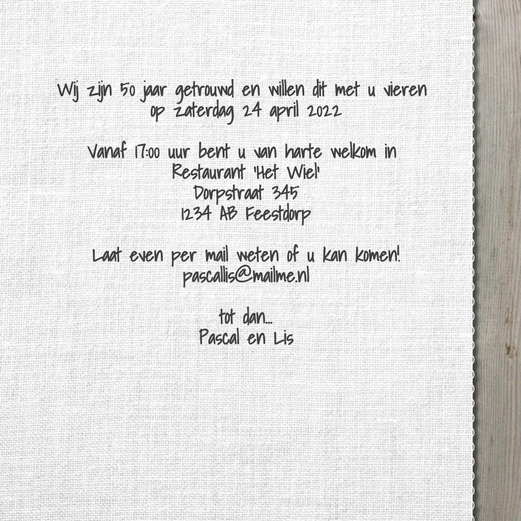 Uitnodiging feest 50 jaar getrouwd hout en linnen