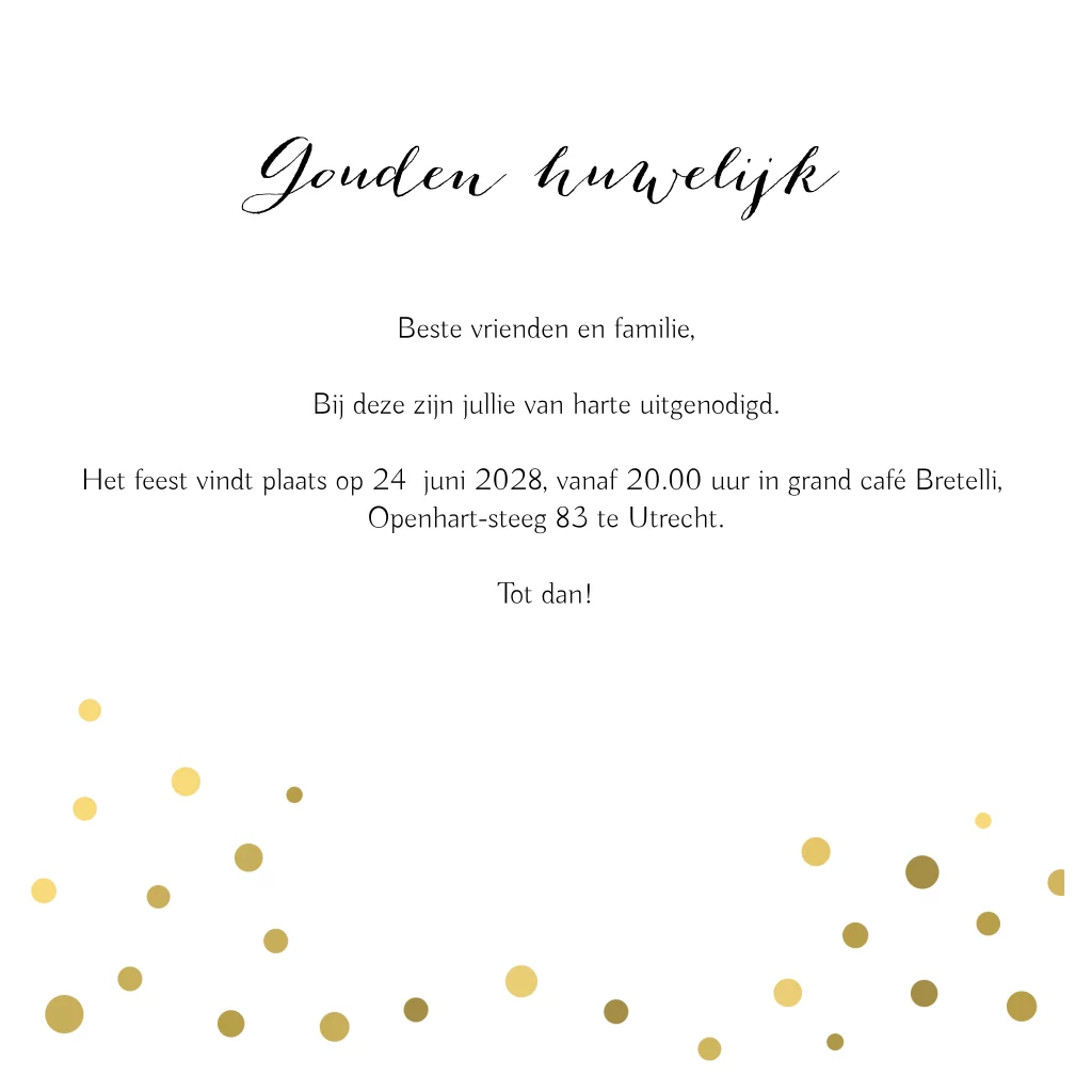 Uitnodiging gouden huwelijk feest 50 jaar