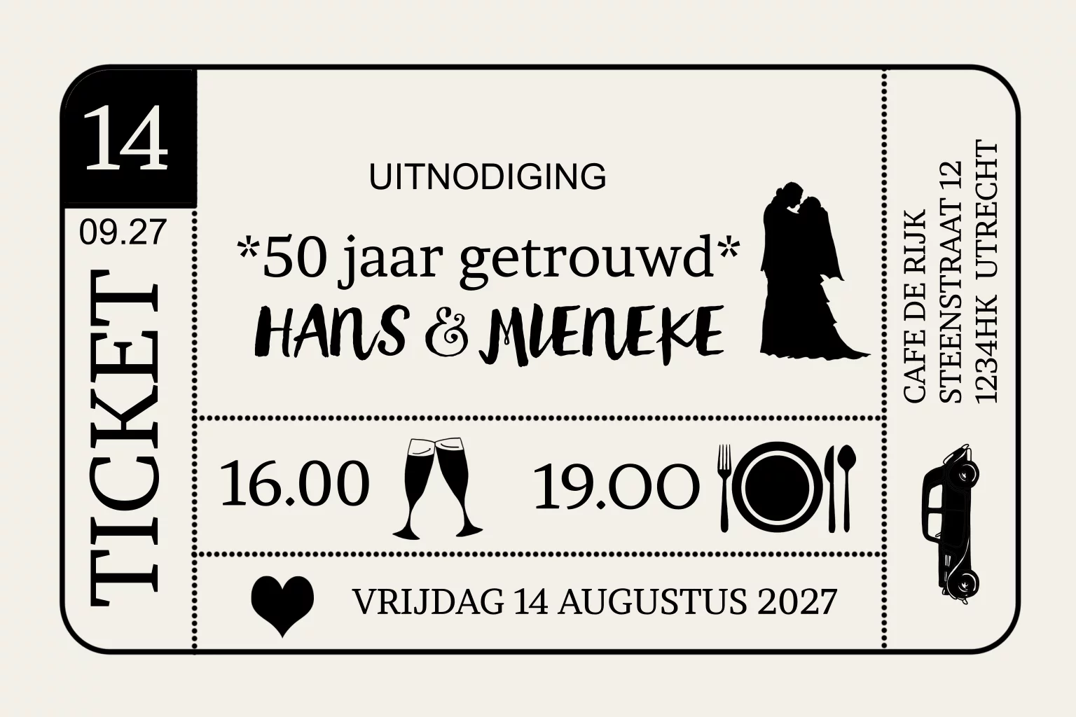 Jubileum uitnodiging ticket 50 jaar getrouwd