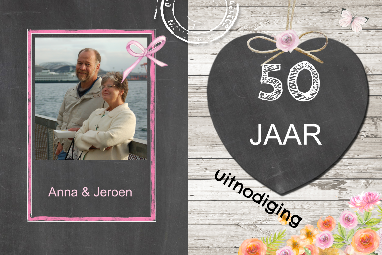Uitnodiging 50 jarig huwelijk met krijtbord hartje