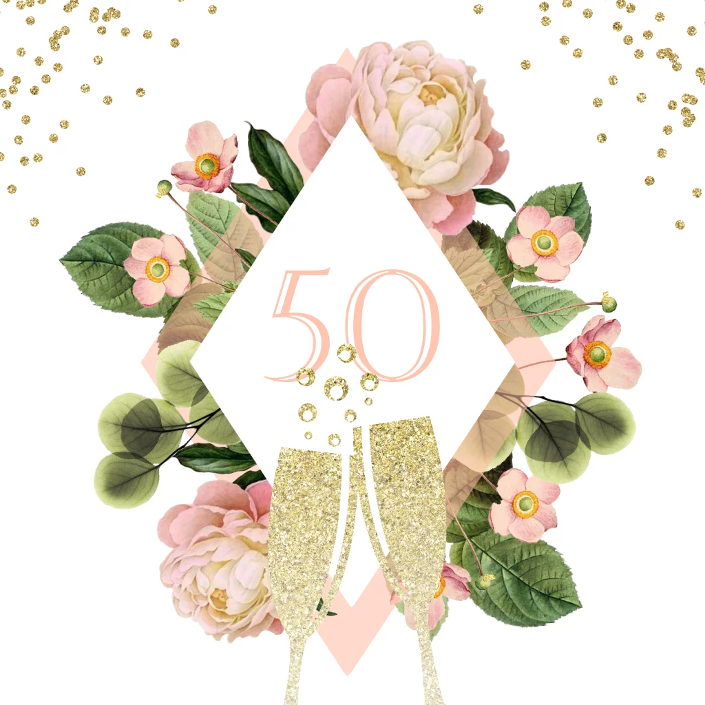 Uitnodiging 50 jaar getrouwd met glazen en bloemen